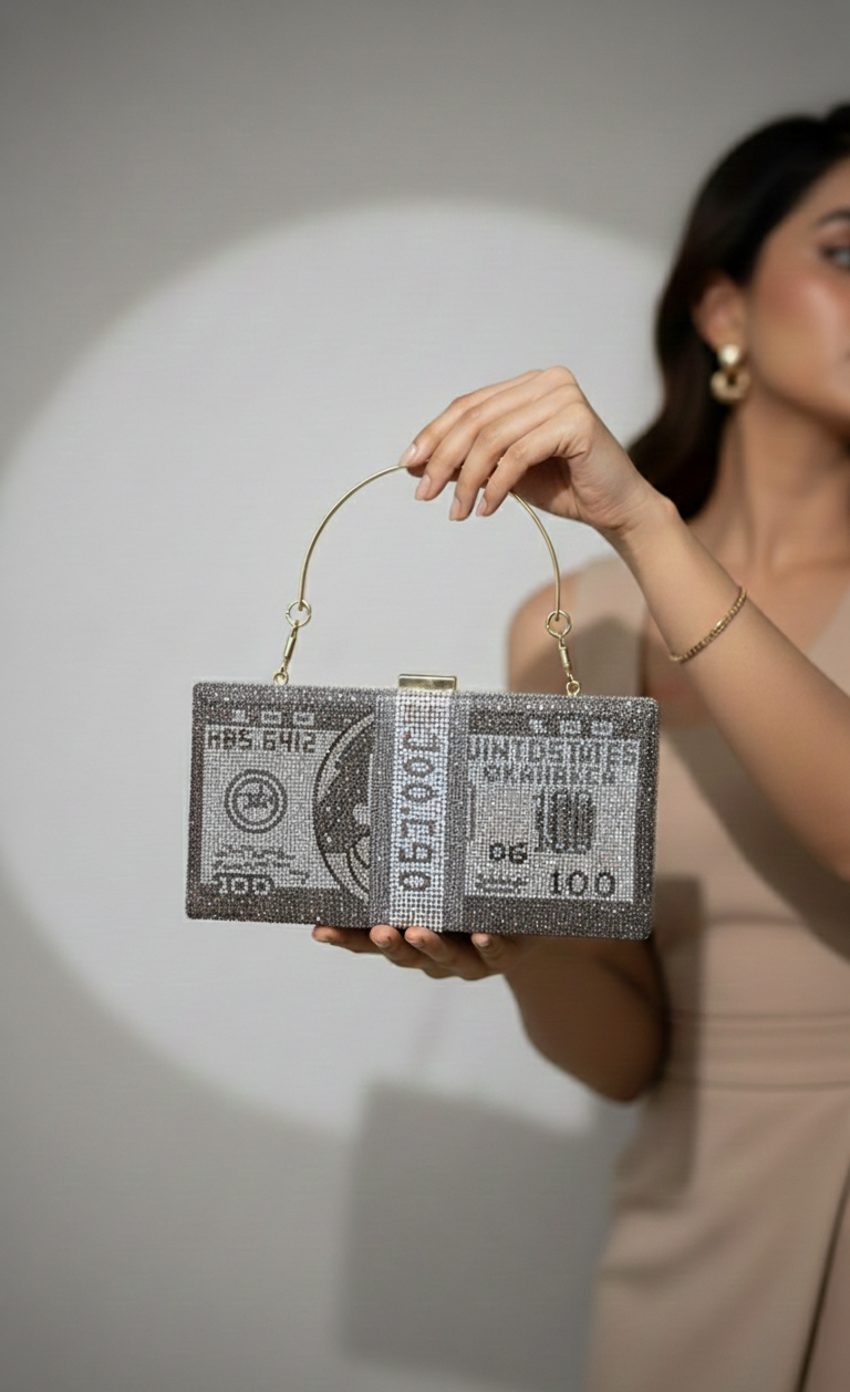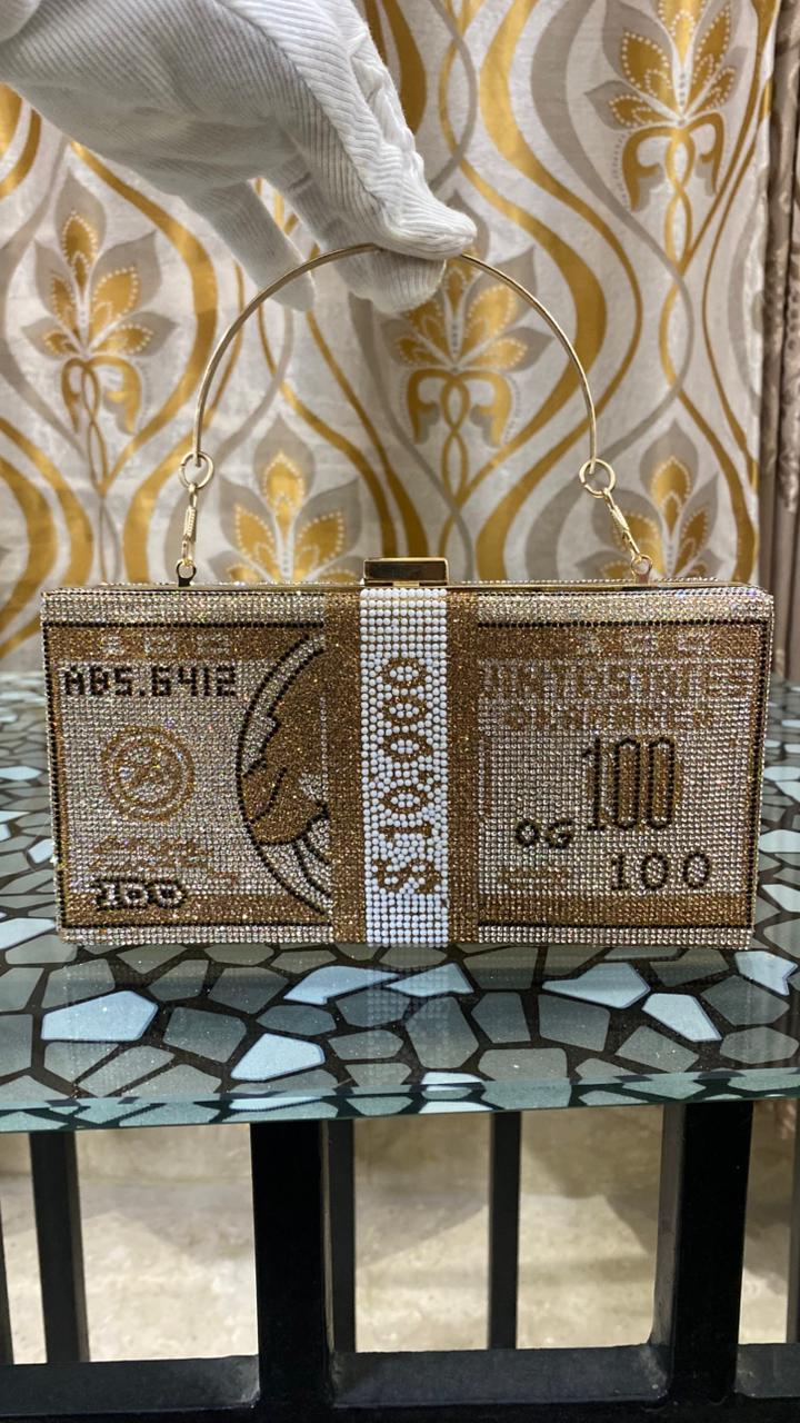 I am obsessed with this money stack bag! The crystals are laid so neatly, and the shine is incredible under the lights